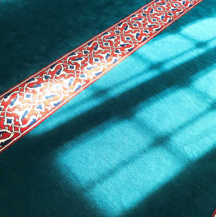 礼拝堂はフロア全面が絨毯仕様。モスグリーンと赤を基調にした模様のコントラストが、フォトジェニックなムードをより高めてくれます。晴れていれば、このように日差しが差し込んでくるので、より一層すてきなシーンを写すことができますよ。