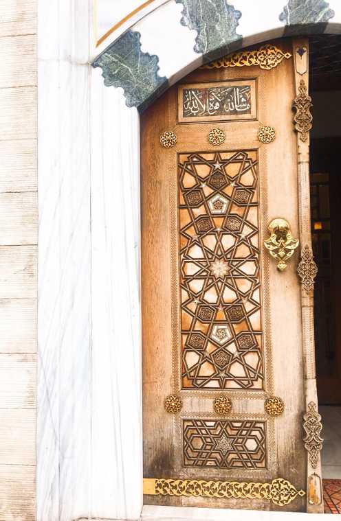 そもそもトルコは、シンメトリーな造形美の文化がある国。例えば、入り口の扉をひとつ切り取っても伝統的な幾何学模様が表面に彫られているので、サマになります。ここの建物はすべてトルコの職人により作られているので、本場トルコをたっぷり感じることができるんです。