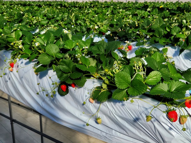 ハウス内には、いちごが2種類栽培されています。