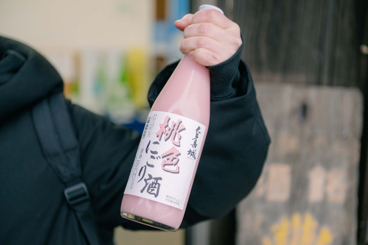 選んだお酒は、青いボトルがきれいな「大多喜城 純米吟醸原酒」1650円と、日本酒なのにピンク!?と驚く「桃色にごり酒」1000円。「大多喜城 純米吟醸原酒」は山田錦100%使用のフルーティーで辛口なタイプ。「桃色にごり酒」は見た目もあって女性に人気で、数量限定の貴重な一本!着色料ではなく、酵母の色によってきれいな桃色になる米と麹で醸造された立派な清酒です。とろりとした濃厚な味わいと甘味で、まるで飲むスイーツ!度数は11%と日本酒にしてはやや低めで、炭酸と割ったり果汁を足したりしてもおいしいです!