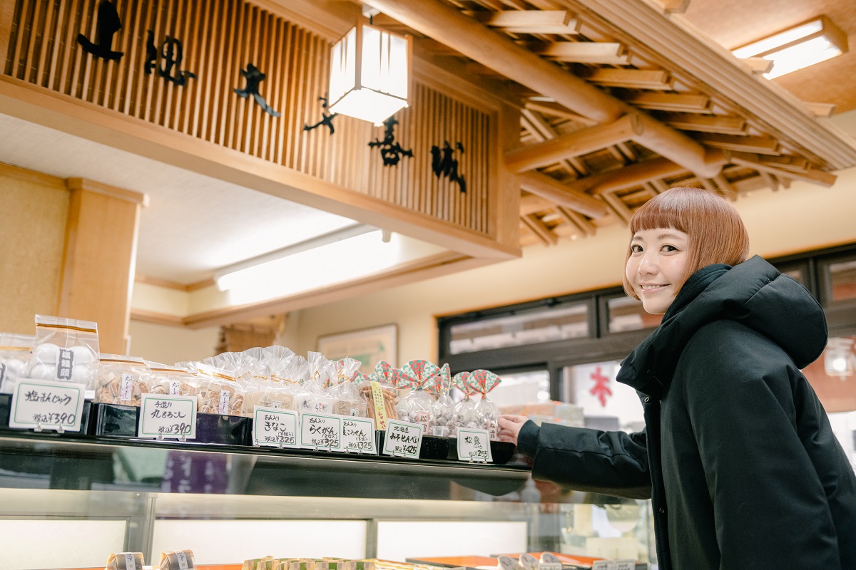 お次にやってきたのは和菓子屋「御菓子司 津知家(おかしつかさ つちや)」さん。こちらもまた風情ある店構えと店内。大正8年(1919)創業と歴史ある津知家さんは、地元の人にも県外の人にも愛されており、取材中も多くの方が代わる代わる買いに来ていました。