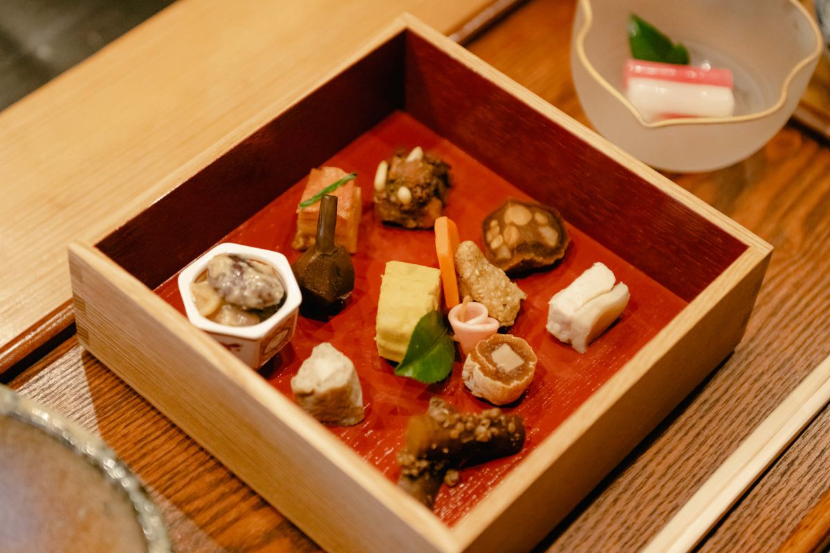 通常は順番に出てきますが、今日は特別にいっぺんに卓上へ。これに、さらにお雑煮とデザートがついてきます。ひとつひとつが味わい深くて感動もたくさん、量もたくさん。お腹も心も満たされて、今流行りのサウナ風に言うと「整う」体験をした気分。