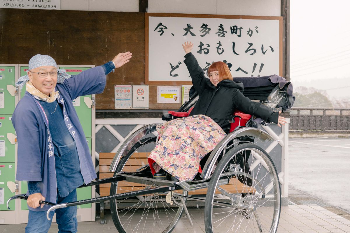人力車体験では、土造りの建物がなんともレトロな「商い資料館」や国の登録有形文化財にも登録されている江戸時代から老舗旅館「大屋旅館」などを巡ることができます。人力車とレトロな街、非常に良い絵になりました~!