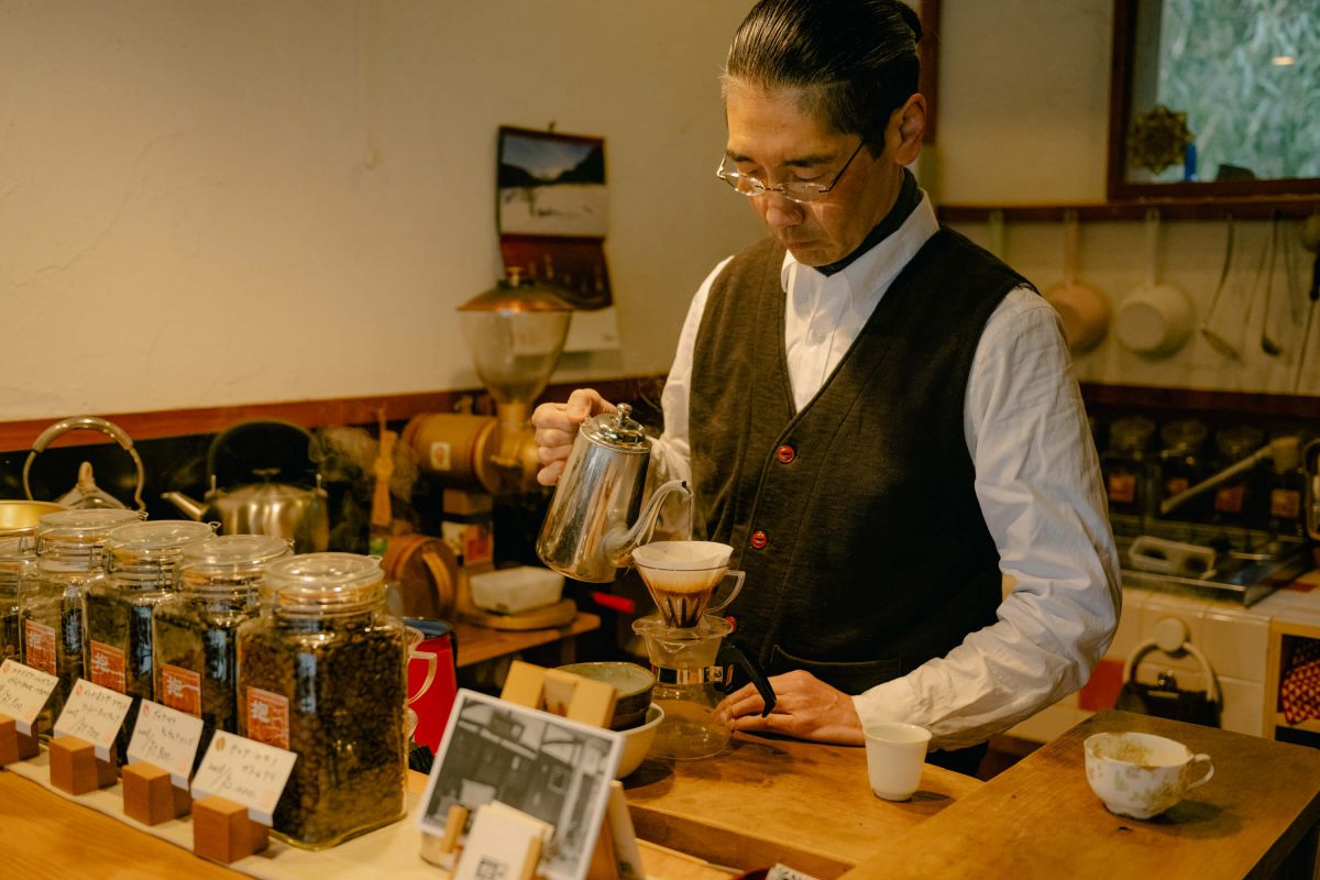 お店に入ると広がる珈琲の良い香り。あぁ、なんで珈琲ってこんなに落ち着く香りがするんだろう…と思った次の瞬間、目に映るのは心が揺れる素敵な内装、そして渋く格好良い長身のマスター・水野さん。