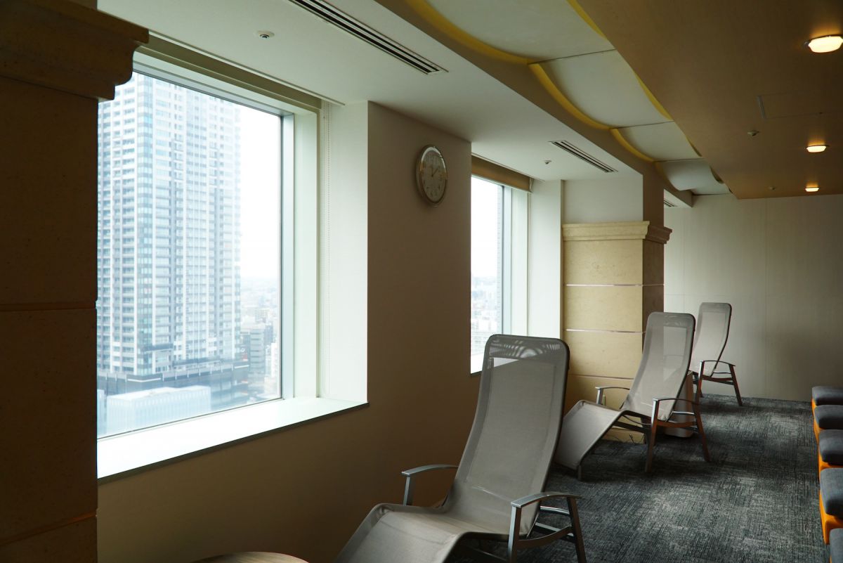 スパやサウナでさっぱりとした体を休める場所も充実しています。こちらは15階の男女共用フリースペース。液晶テレビ付きのリクライニングチェアや横浜港を一望できる大きな窓際に設置されたインフィニティチェアなど、とにかくリラックスできる空間で、ついうとうとしてしまいそう。