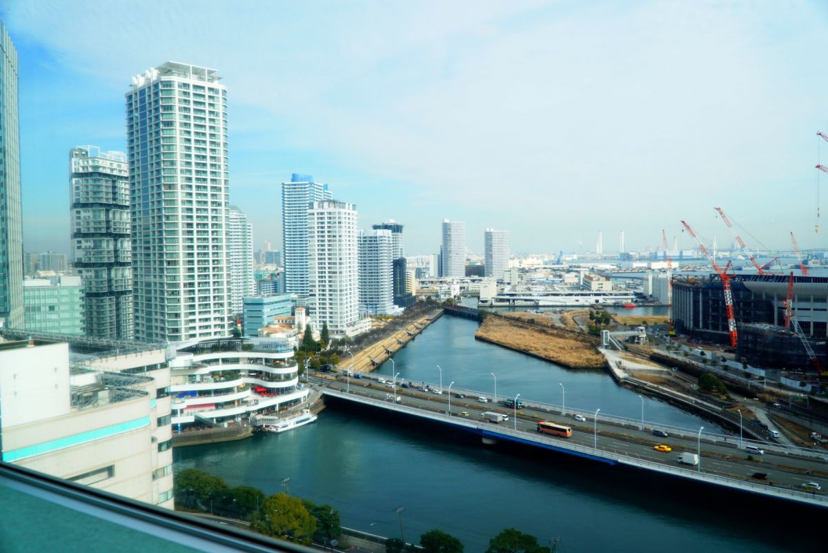 窓からは横浜らしい景色を見ることができます。夜になると商業施設「横浜ベイクォーター」などのライトアップで、雰囲気がガラリと一変。この景色を眺めるだけでも価値があります!
