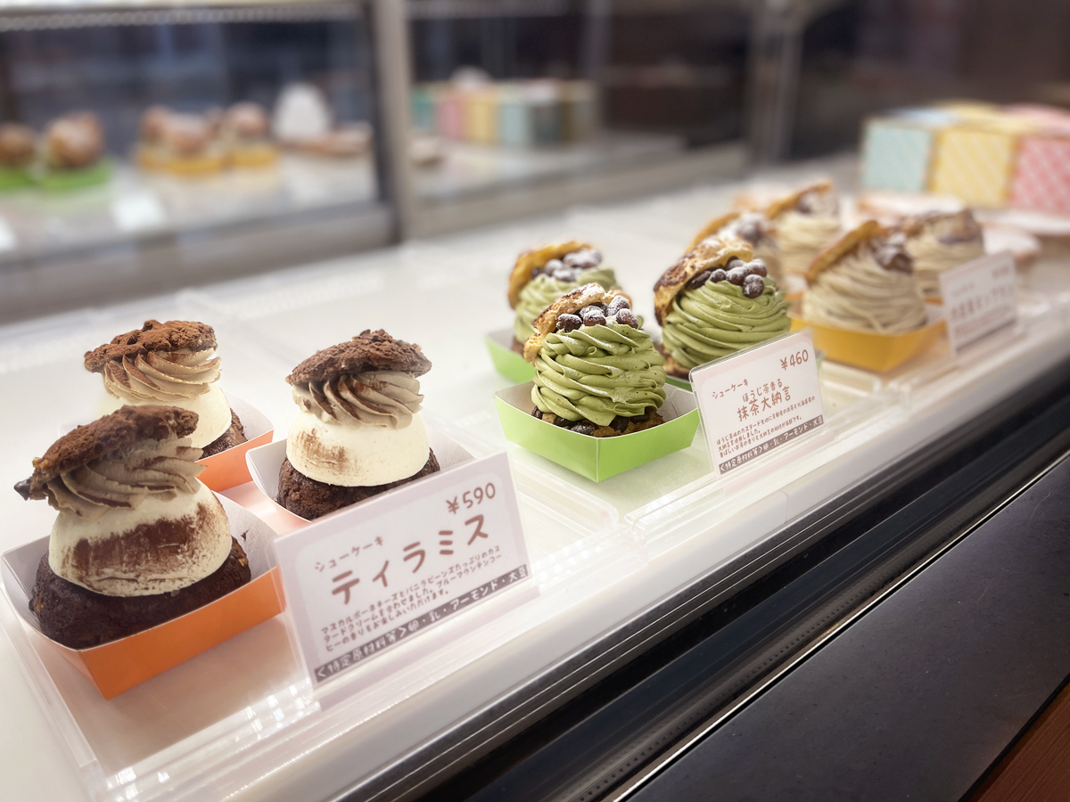 ショーケースにはシューケーキやギフト用が並んでいます。季節の変わり目などに、新商品を出しているのだそう。