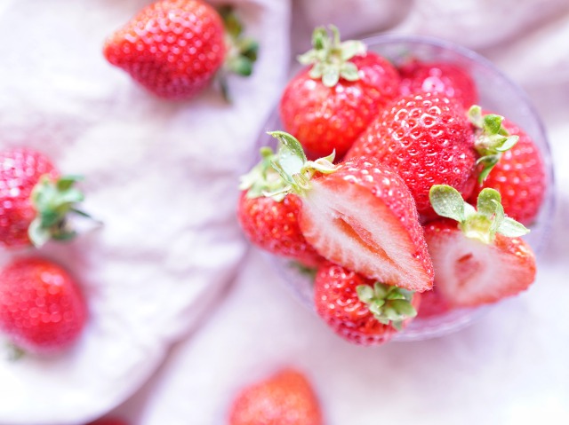 いちごはヘタに向かうほど糖度が下がるので、食べるときは、ヘタの方から。