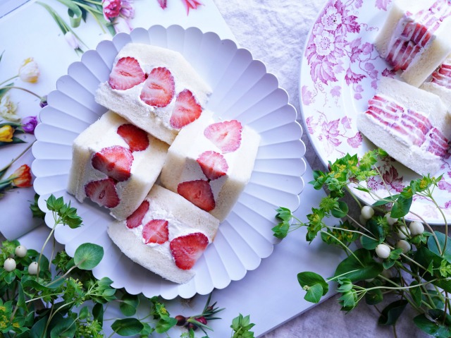 遅ればせながら、あけましておめでとうございます。あっという間に1月も後半!今年も読者のみなさまに楽しく見ていただけるような記事作りを心掛けたいと思っています!さてさて、記念すべき新年1投稿目、そして40回目ということで、いちごの女王といっても過言ではない、あまおう様のお出ましです。お店などでもよく見かけるいちごサンド、材料はいたってシンプルなのですが、難易度が高いというお声をいただくこともしばしば。ということで今回は、ちょっとしたコツをちりばめた、いちごサンドをお届けします!よかったらぜひ作ってみてくださいね。