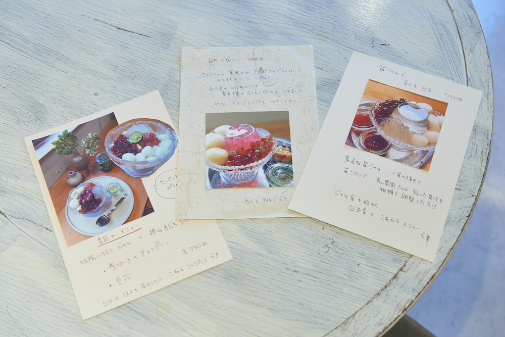 最近メニューに加わったのが、季節のジャムを使った白玉。ジャムも旬を迎えた果物から手作り。2021年から季節の果物のジャム屋さんとしての活動もスタートされており、バリエーション豊かなジャムは店頭でも販売されています。