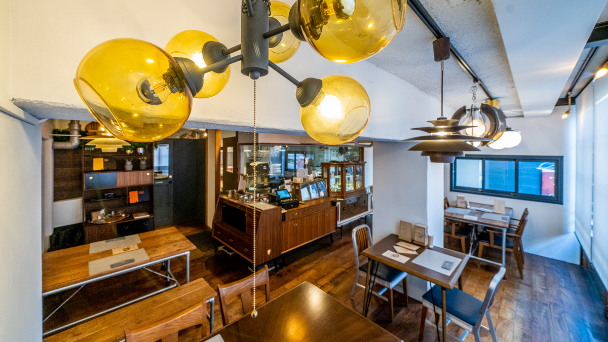 天井に並ぶ照明を見ても、本当にステキなものばかり。広々とした店内ながらテーブルは4つだけで、スペースも贅沢に使用しています。JAZZやSOULといった上質な音楽を聞きながら店内を眺めているだけでも、豊かなひとときを過ごすことができるでしょう。