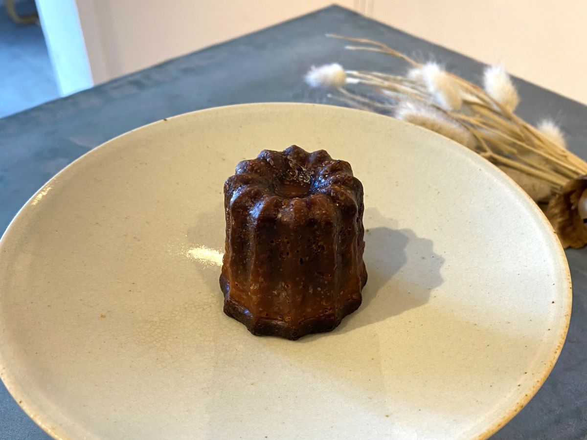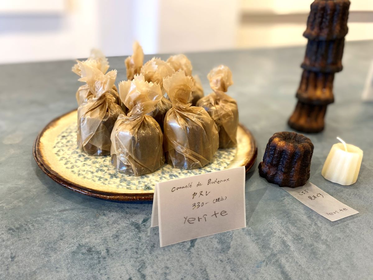 外はがりっと少し硬めの食感で、中はぷるもちっとしています。銅製の型にミツロウを塗って焼くことで、熱伝導をゆっくりにし、この食感を実現しているのだとか。香ばしさのなかにラム酒の香りがふわっと漂い、やさしい甘さが広がっていく少し大人なお菓子。ひとつひとつ丁寧に作られていることが感じられるカヌレでした!