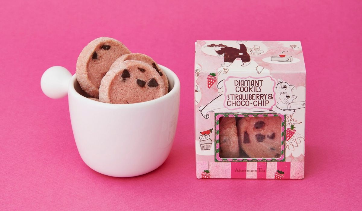 「ディアマン 苺チョコチップ(6 個入)」630円は、サクサクと歯ざわりのよいイチゴ味のディアマンクッキー。甘酸っぱいイチゴの生地にチョコチップがアクセントに。