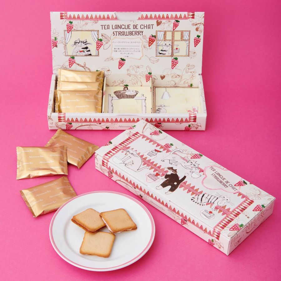 「Afternoon Tea」の春限定イチゴとネコ描いたパッケージとスイーツで、春を先取りしませんか。