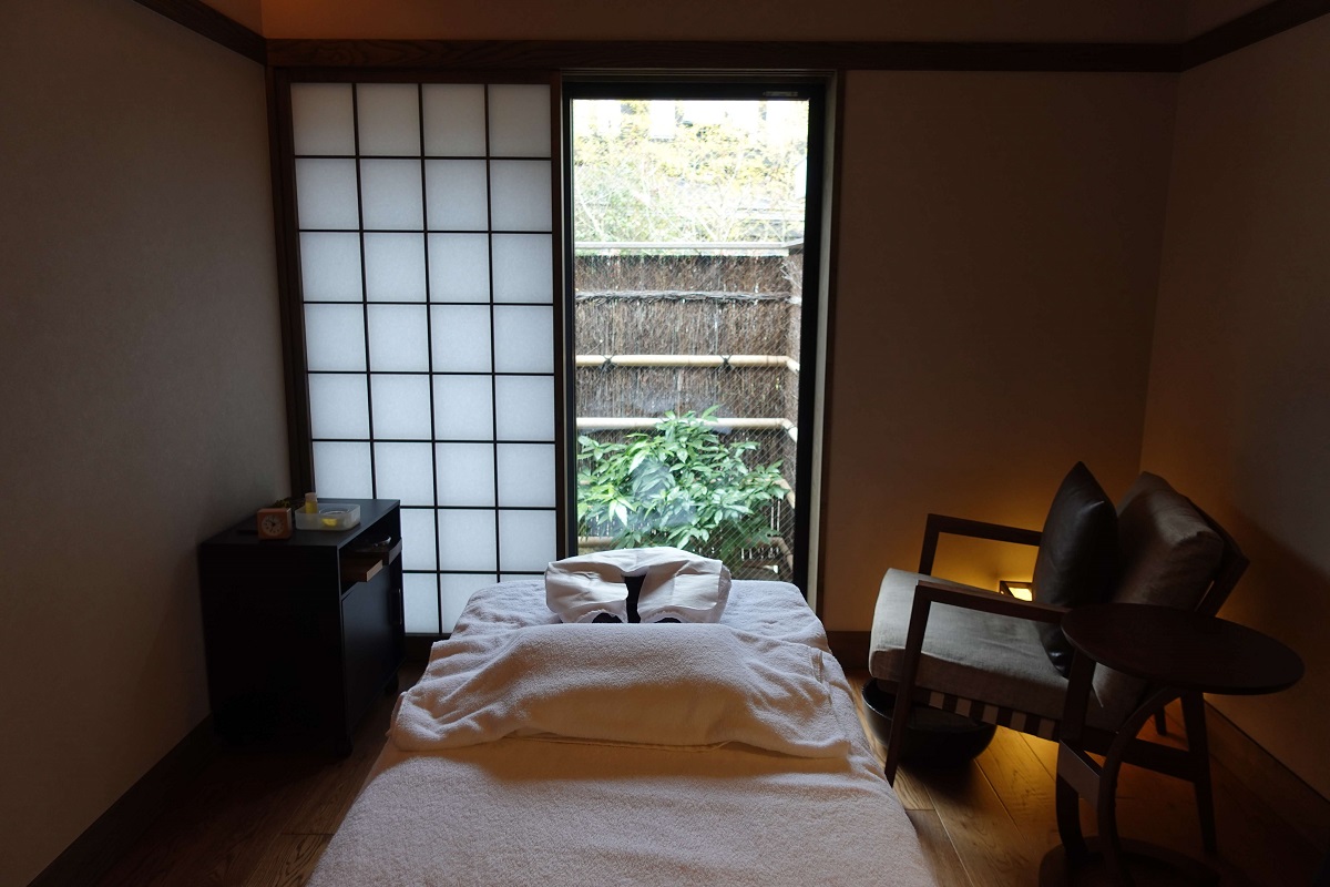 さて、温泉の後は、少し外を歩いて、 “離れ”にあるスパトリートメント施設「SOJYU spa」へ。個室2つしかなく、とてもこじんまりとしているので静寂に包まれています。
