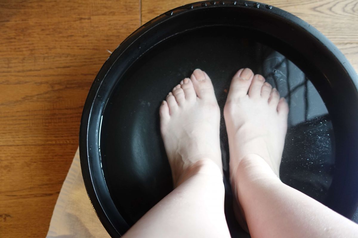 最初は足湯。先ほど選んだアロマを数滴たらしつつ、少しバスソルトを入れて、じんわりと温めます。これが、本当に気持ちいい…。