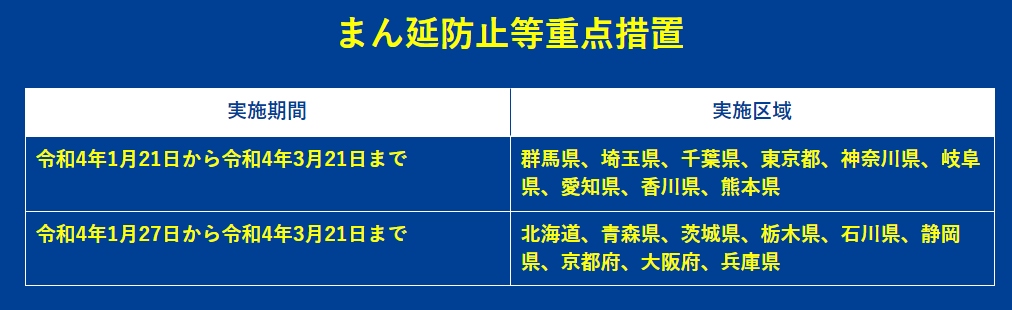 まん延防止等重点措置が追加・延長されていましたが、3月21日の期限ですべて解除されました。ここでは「まん延防止等重点措置」について最新情報や各都道府県の対応状況をまとめています。