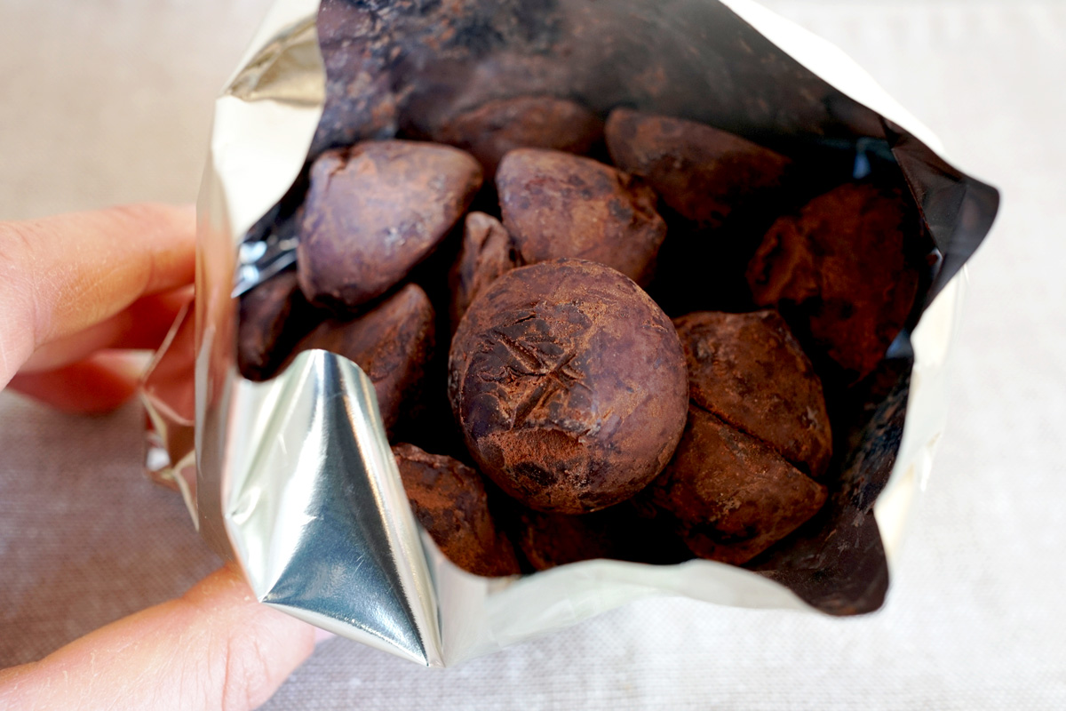 驚きなのは、そのコストパフォーマンス。袋を開けると、3cm弱のチョコが5粒入っています。これが200円台で購入できるなんて!