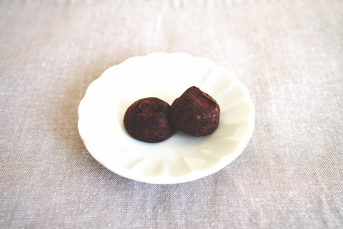 上質なココアパウダーでコーティングされたトリュフは、なめらかな舌ざわりで、スッとやさしくとろけていきます。ココアの後味も上品。