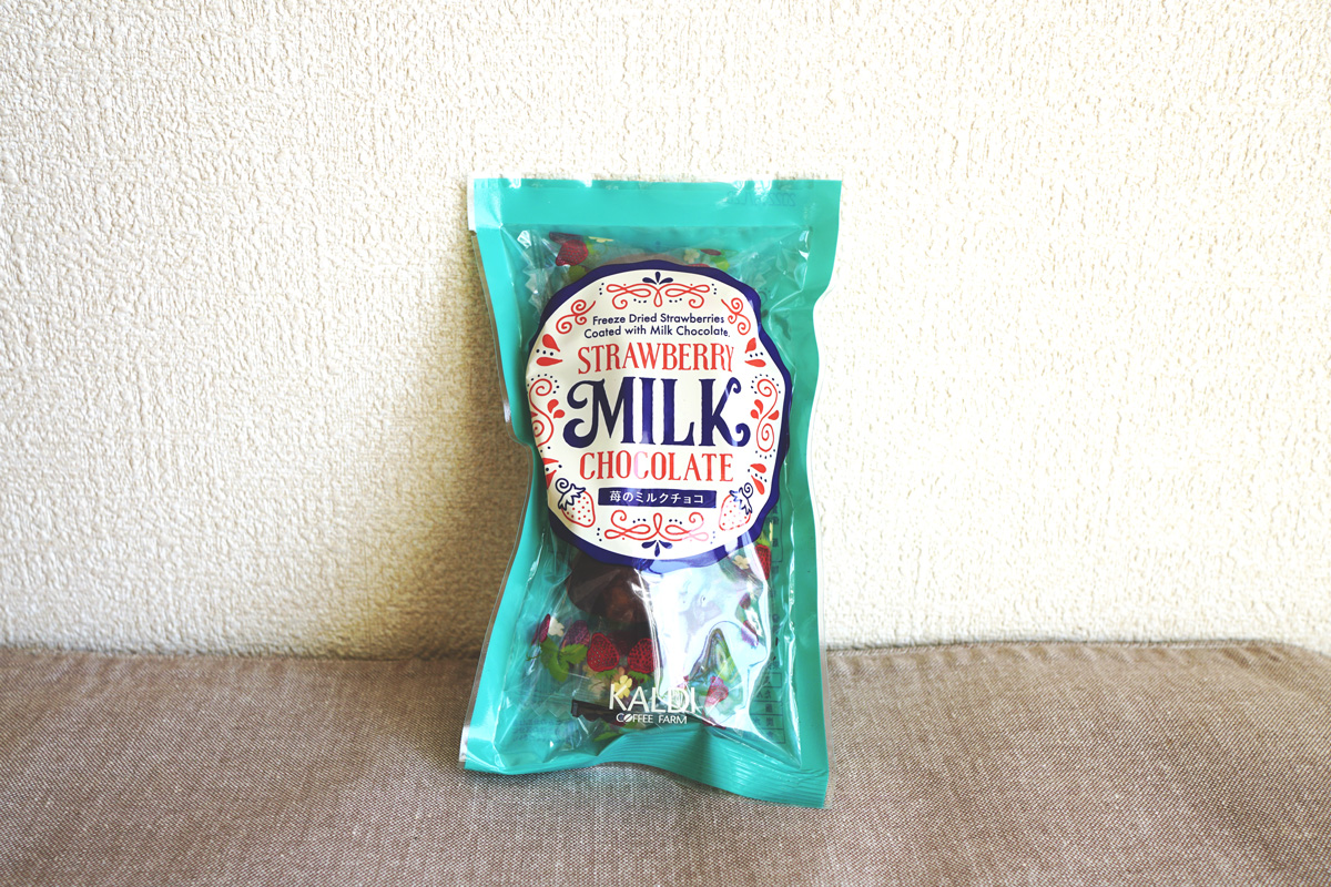 続いてご紹介するのは、フリーズドライいちごがまるまる1粒チョコレートでコーティングされた「苺のミルクチョコ」。カルディでもバレンタインに登場する、人気の定番商品です。