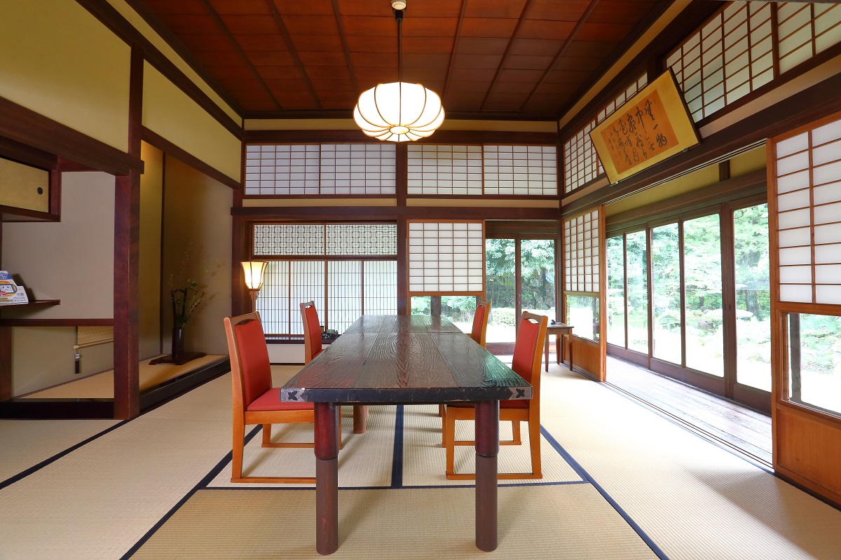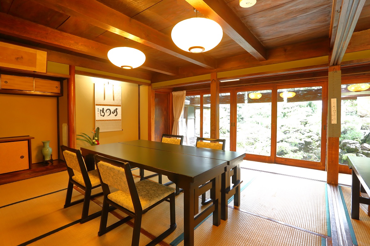 現在の建物は大正元年(1912)築で、客室のガラス障子や欄間などのしつらえは当時の姿のまま。部屋からは四季折々に表情を変える美しい庭園を眺めることができます。