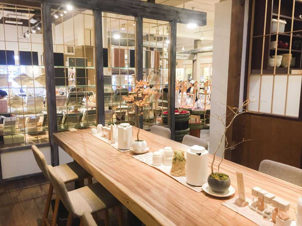 木製のテーブルや机、漆喰の白壁、さらに天井には自然光が入る天窓まで。自然素材に包まれたオーガニックな空間が、味噌の味わいをいっそう深めてくれます。