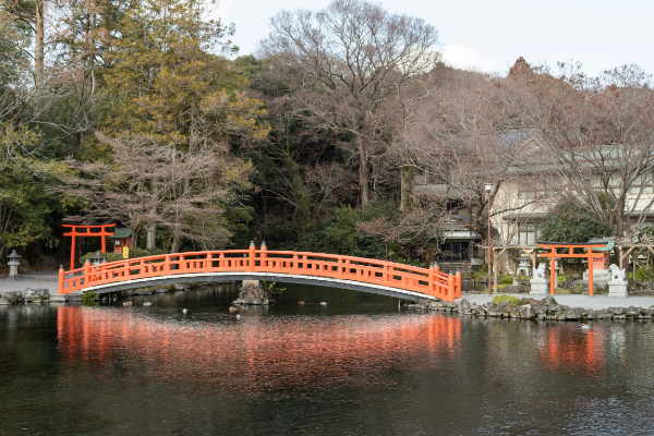 すぐ隣にあるのは、地元で「お浅間さん」の愛称で親しまれ、古くから富士山信仰の神社として知られている富士山本宮浅間大社。国の特別天然記念物である湧玉池(わくたまいけ)近くの鳥居から、徒歩1分で「Mt. Fuji Brewing」に到着します。
