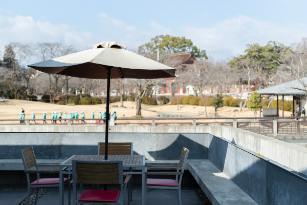 天気の良い日にはテラス席もおすすめ。テーブルとチェアは歩行者からの視線が気にならない高さに設計されているため、のびのびと外の空気を味わうことができますよ。