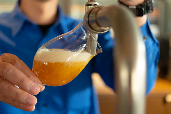 會森さんが惚れ込んだ富士山の雪解け水は、お店のすぐ近くで湧いているものを使用。それぞれのビールが持つ味はもちろんのこと、日の光に透かすと一層キラキラと輝くその透き通った「色」も楽しみましょう。