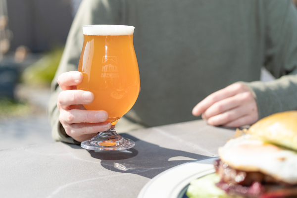 食べ応えのあるレストラン・バーガーに合わせたビールは「柑子富士」。苦味が強い印象のIPAですが、マスカット果汁がブレンドされていることで爽やかな風味が生まれ、ジューシーな肉やコクのあるソースにピッタリ。
