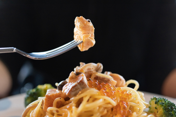 こちらは富士宮産のクヌギ鱒の身と卵を贅沢に使ったクリームパスタ。彩りも美しく、目でも舌でも美味しさを楽しむことができます。クリーミーなのにサッパリ、燻製の風味がまろやかで、これまたビールと合う!