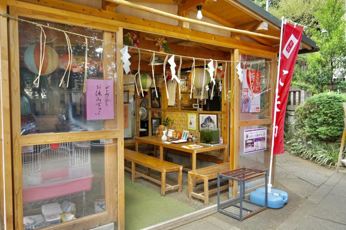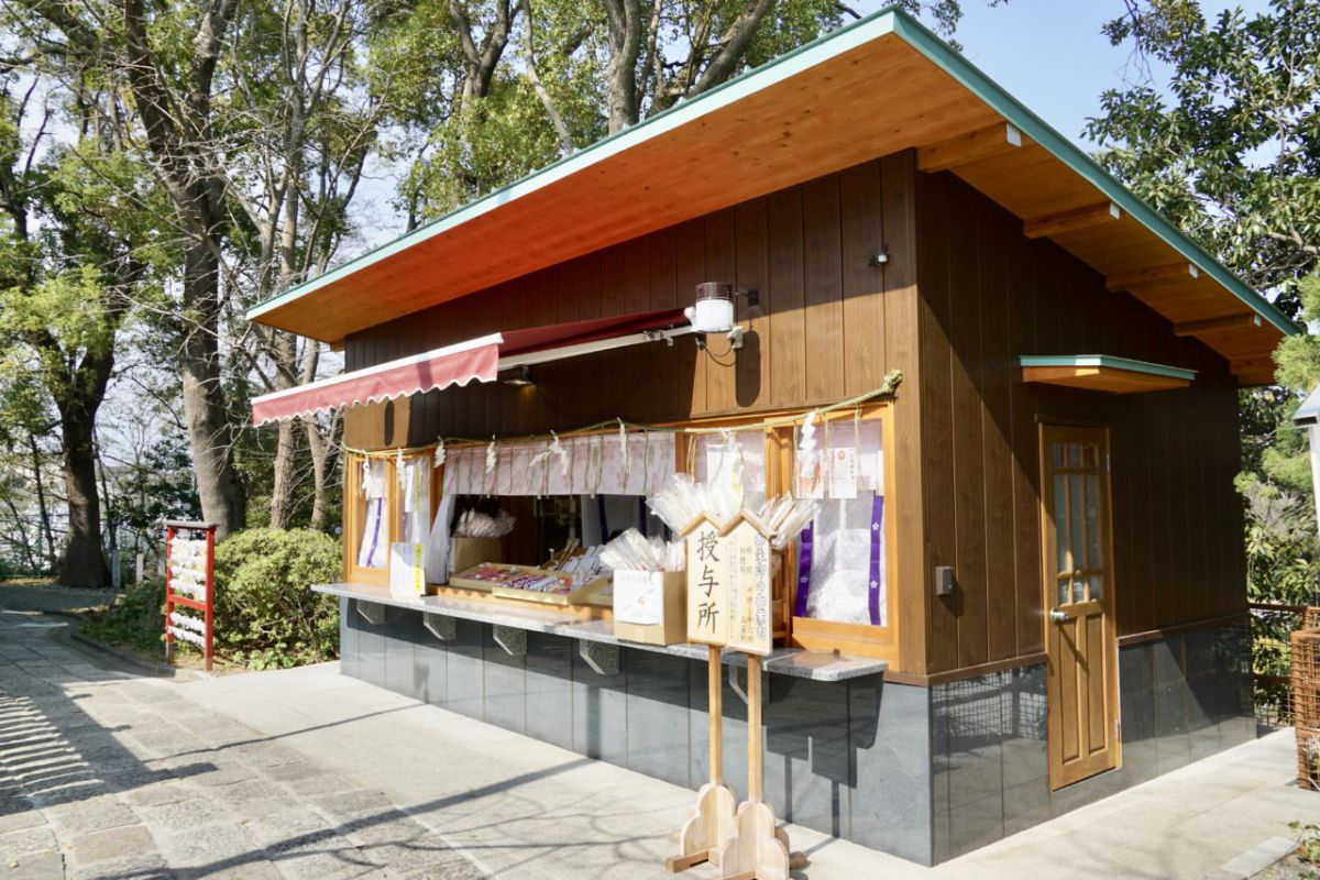 授与所は鳥居の近く。ここではウサギを飼育しており、「幸せうさぎ」とよばれて親しまれています。手水舍奥にもウサギ小屋があるのでのぞいてみてください。