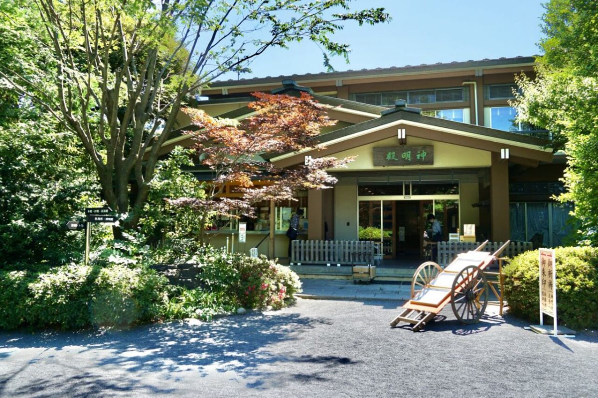 伊勢神宮より天照皇大神(アマテラスオオミカミ)の御分霊を迎えて祭っています。また、東京23区で最も高い位置にあることから、合格祈願や恋愛成就の神社として各地から多くの人が参拝に訪れています。