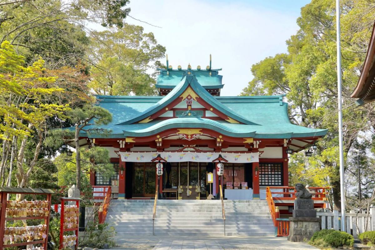 住宅地の一角にありながら、木々に囲まれた緑豊かな神社は、地元では癒やしのスポットなのだとか。境内には公園もあり、お散歩コースにもぴったり。