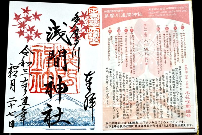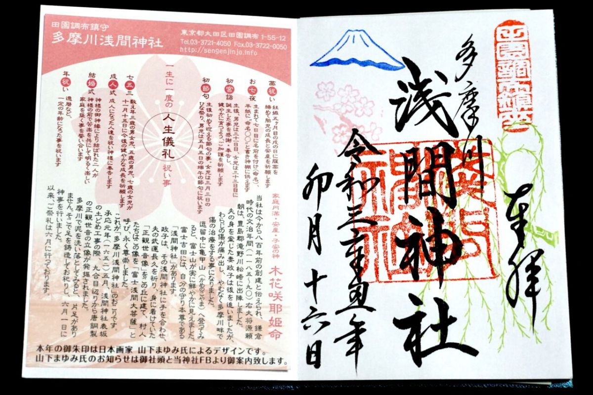 桜の語源となった女神を祭る「多摩川浅間神社」の富士山を描いた御朱印