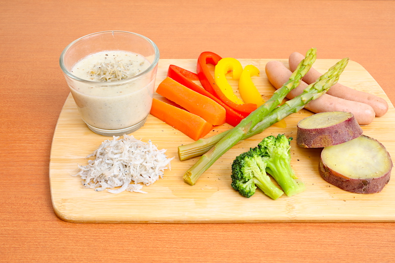 「しらすのバーニャカウダ」は、茨城県産の季節の野菜をシラス入りのオリジナルソースにつけて味わいます。濃厚ながらも、シラスの風味でさっぱりとした後味。海の幸と栄養満点の野菜の両方が味わえるメニューです。