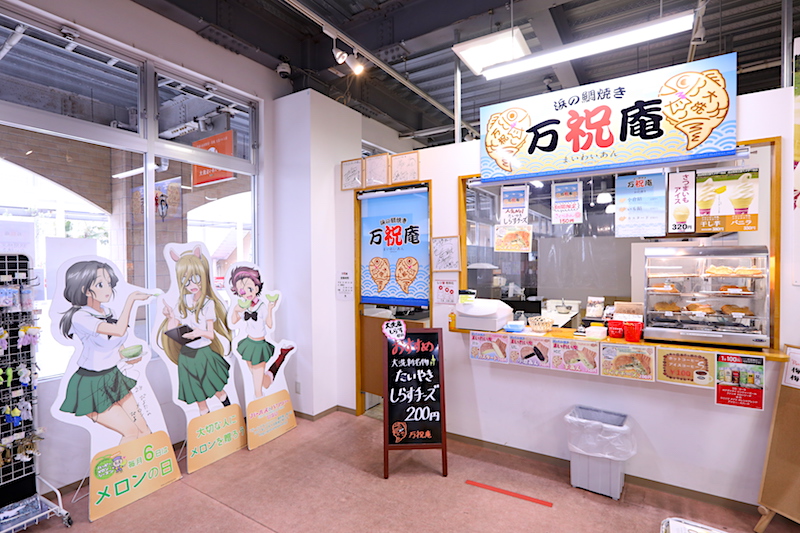 茨城県産の自慢の食材が一堂に集まる物産直売所「まいわい市場」。店内には地元生産者が丹精こめて栽培した朝どれ野菜や、旬の果物、海産物などがずらりと並んでいます。人気アニメのガールズ&パンツァー関連のグッズも種類が豊富。店内の一角にある万祝庵では、お買い物の途中に作りたての鯛焼きやソフトクリームを味わえますよ。