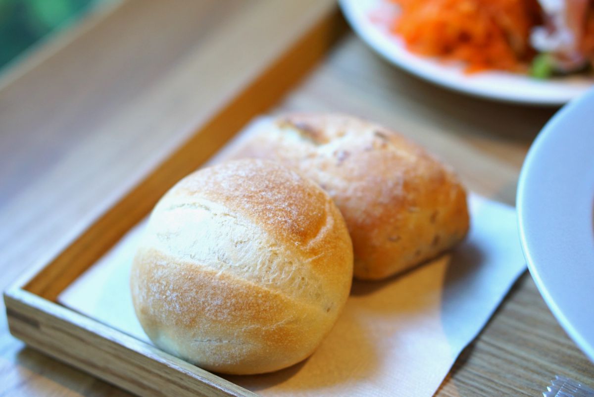 付合せのサラダやパンを食べていると、徐々にお腹もいっぱいに。パンは濃いめのスープとの相性抜群。自家製ドレッシングがかかったサラダは食感が楽しく、生ハムたっぷりなのでかなりの食べごたえです。