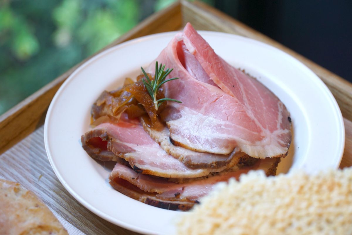 こちらは温かいデリの「自家製ジンジャーポーク」。先ほどの「自家製ジンジャエール」で使用したショウガを使っています。