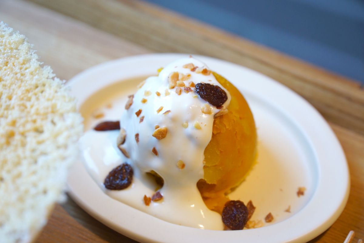冷たいデリは「かぼちゃとさつまいものレアチークリームサラダ」をチョイス。さわやかなレアチーズクリームがアクセントになっていてスイーツのような味わいです。デリのラインアップはその日によって変更する可能性があるため、訪れるたびに楽しめそう。また、300円でデリの追加も可能です。