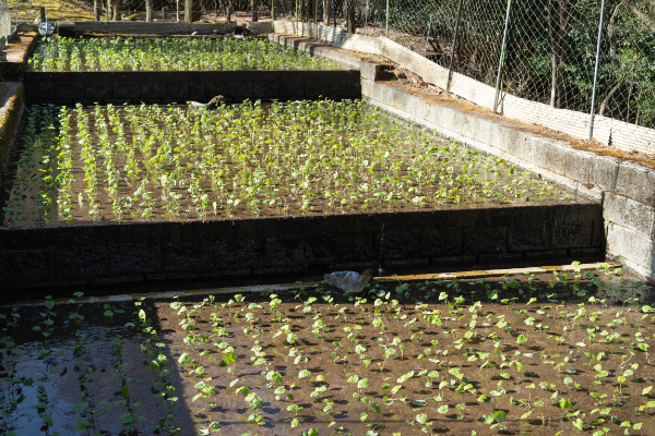 お店の裏手へ行くと、わさび田がありました。最近植えたばかりというわさびは、数ヶ月〜1年後に収穫されるそう。時期によっては収穫体験も行えるので、興味のある方はチェックしてみてくださいね。