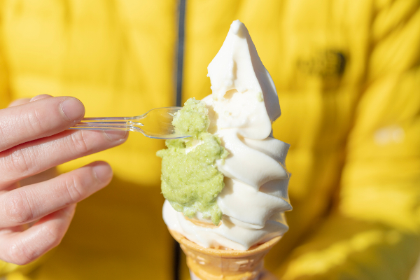 意外なことに、わさびの辛みがソフトクリームのミルク感を引き出し、なんとも爽やかな風味に。クセになり、次の一口が止まりません。これを目当てに来る方もいることに納得です。
