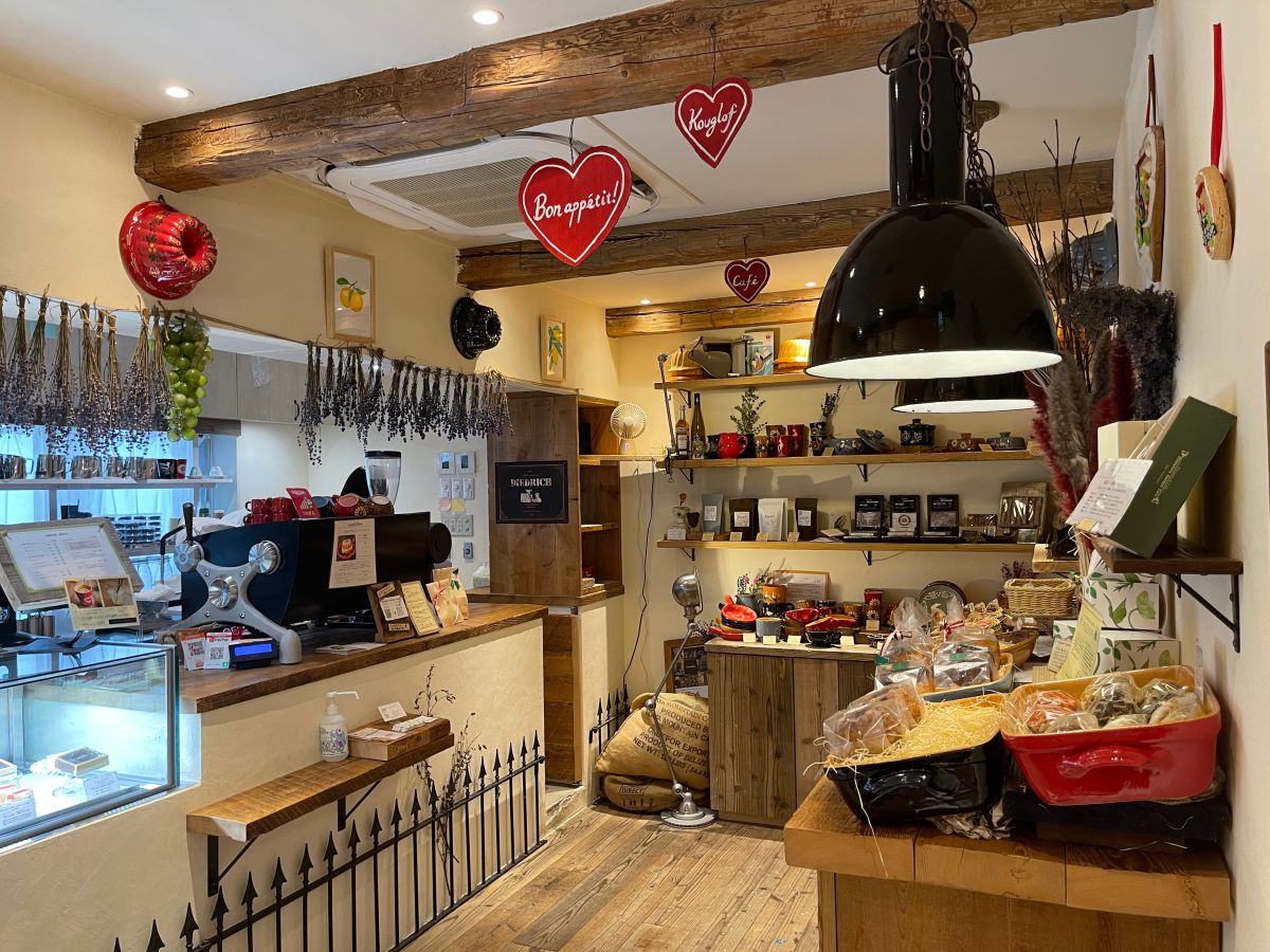 3階のイートインスペースのインテリアや内装も、もちろんアルザス地方をイメージ。アンティークの扉や柵、木材がふんだんに使用され、素朴で温かいほっこり空間が広がっています。