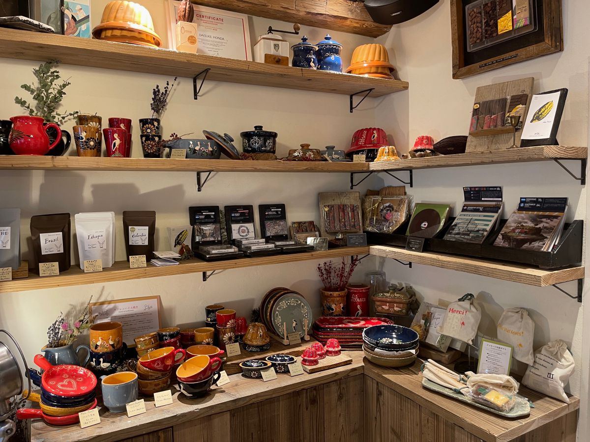 焼き菓子やケーキに加え、広島のチョコレートファクトリー「rit.(リタルダンド)」の自家製クラフトチョコレートなども販売されています。イートイン利用の場合も、注文は2階です。