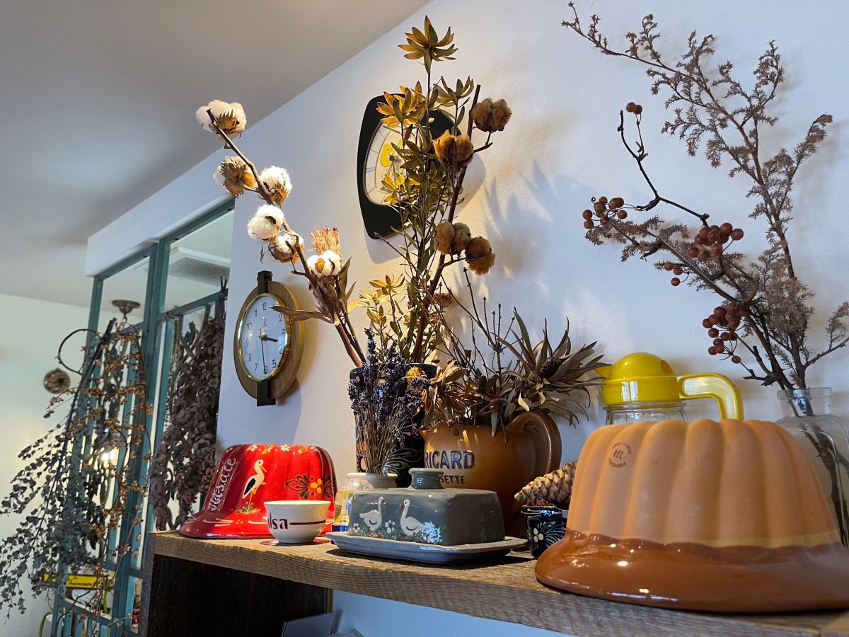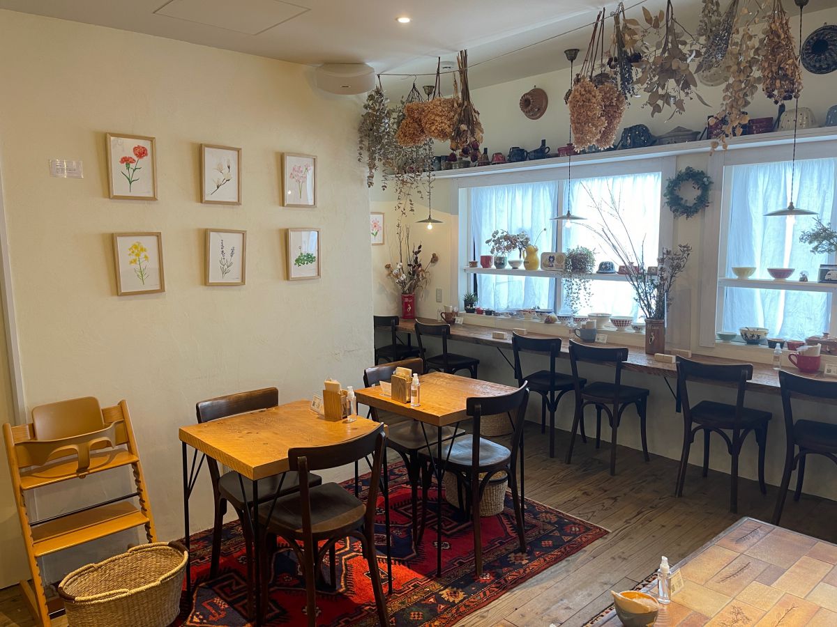 ドライフラワーやスフレンハイム焼きの器も並び、雰囲気も抜群! まるで本当に海外にいるかのような錯覚をしてしまいます。