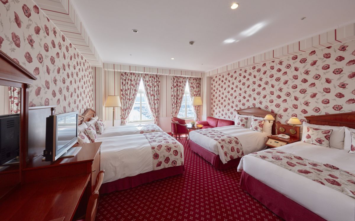 客室のなかには、クラシックな花柄のお部屋もあります。落ち着きのある配色なので、恋人でも家族でも心地よく過ごすことができます。夜~早朝に移り変わるハウステンボスのパークビューを楽しむことができたり、種類豊富なレストランを楽しめたり、「ホテルアムステルダム」に泊まったからこその特別な時間を約束してくれます。