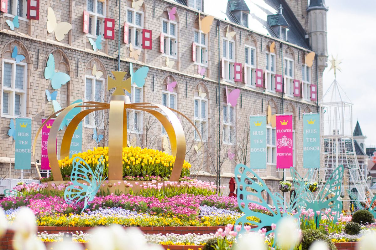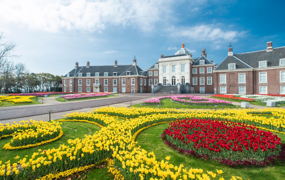 場内の最奥に佇む宮殿の前庭には、オランダのキューケンホフ公園をイメージした春らしい花壇も新登場。ここでも見頃を迎えて咲き誇るチューリップに見惚れることができます。(見頃:3月中旬~4月上旬予定)