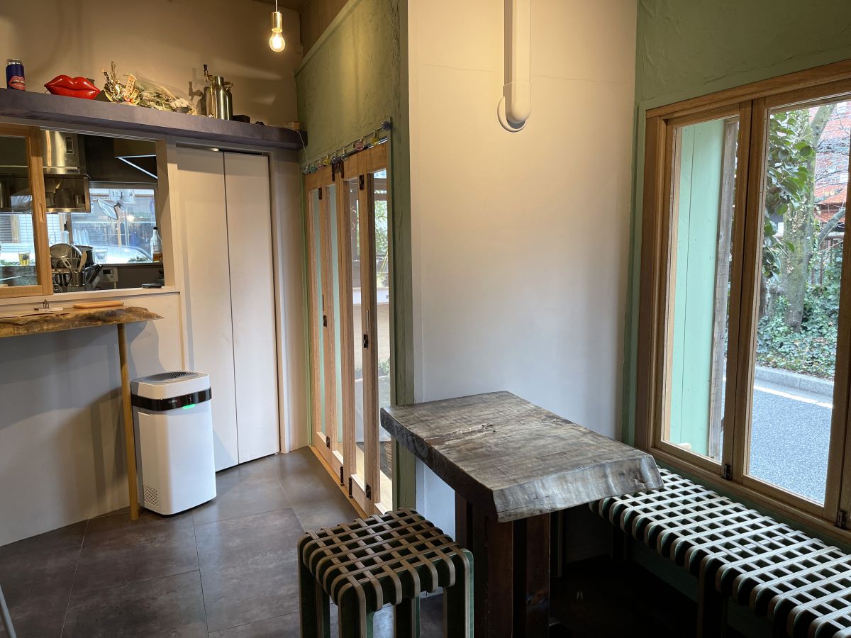 テーブルもオーナー自らリメイクし、客席の空間を広げたそう。また、窓や入り口の扉を観音開きにするなど、風通しのよさもばっちり。