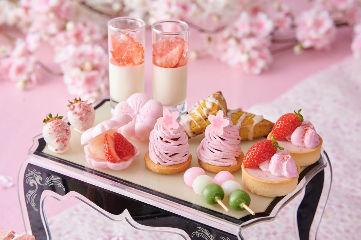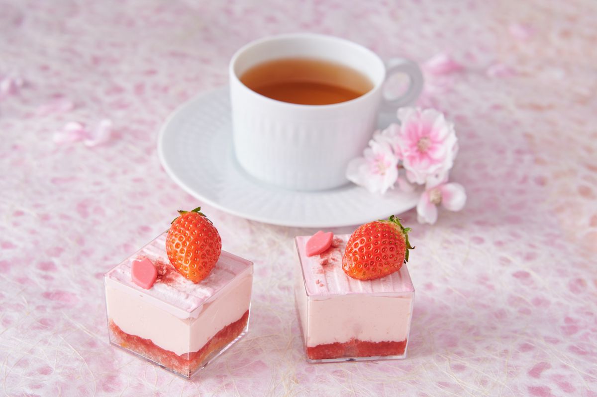 イチゴを忍ばせた「桜モンブラン」や桜型の「桜最中 白餡と苺」、イチゴのエキスをたっぷりと浸み込ませたスポンジに桜マスカルポーネクリームを重ねた「桜&ストロベリーティラミス」や「苺入り桜ゼリーとフロマージュブラン」など、桜の花びらのように美しいベビーピンクで統一された気分が上がるスイーツの数々がラインナップ。