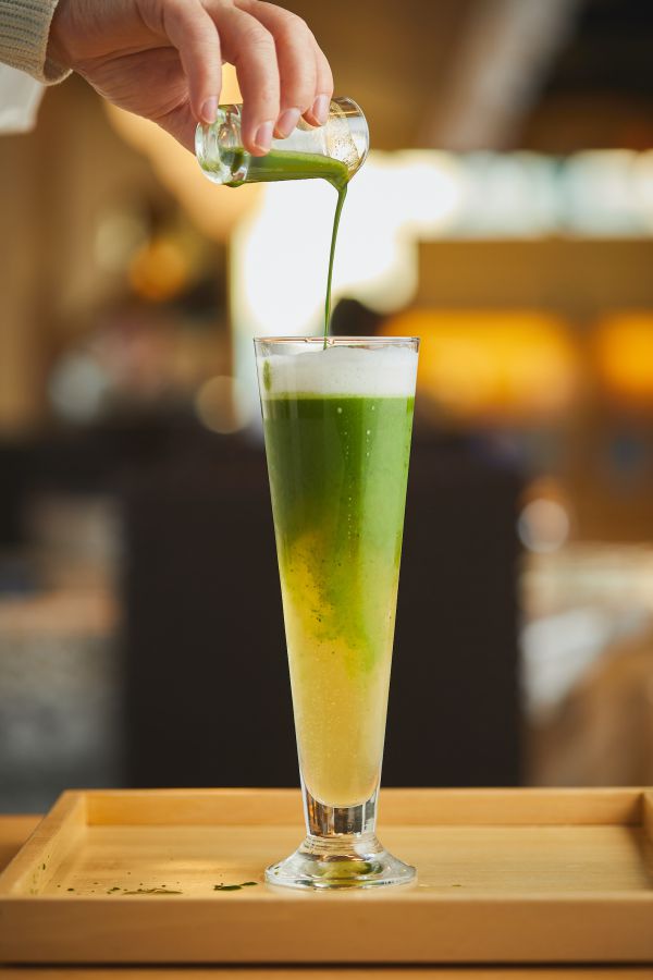 ビールに濃い抹茶を注ぎ入れて、できたてを味わいます。抹茶のさわやかが加わり、お風呂上がりにクッと一息で飲みたいキレのある喉越し。